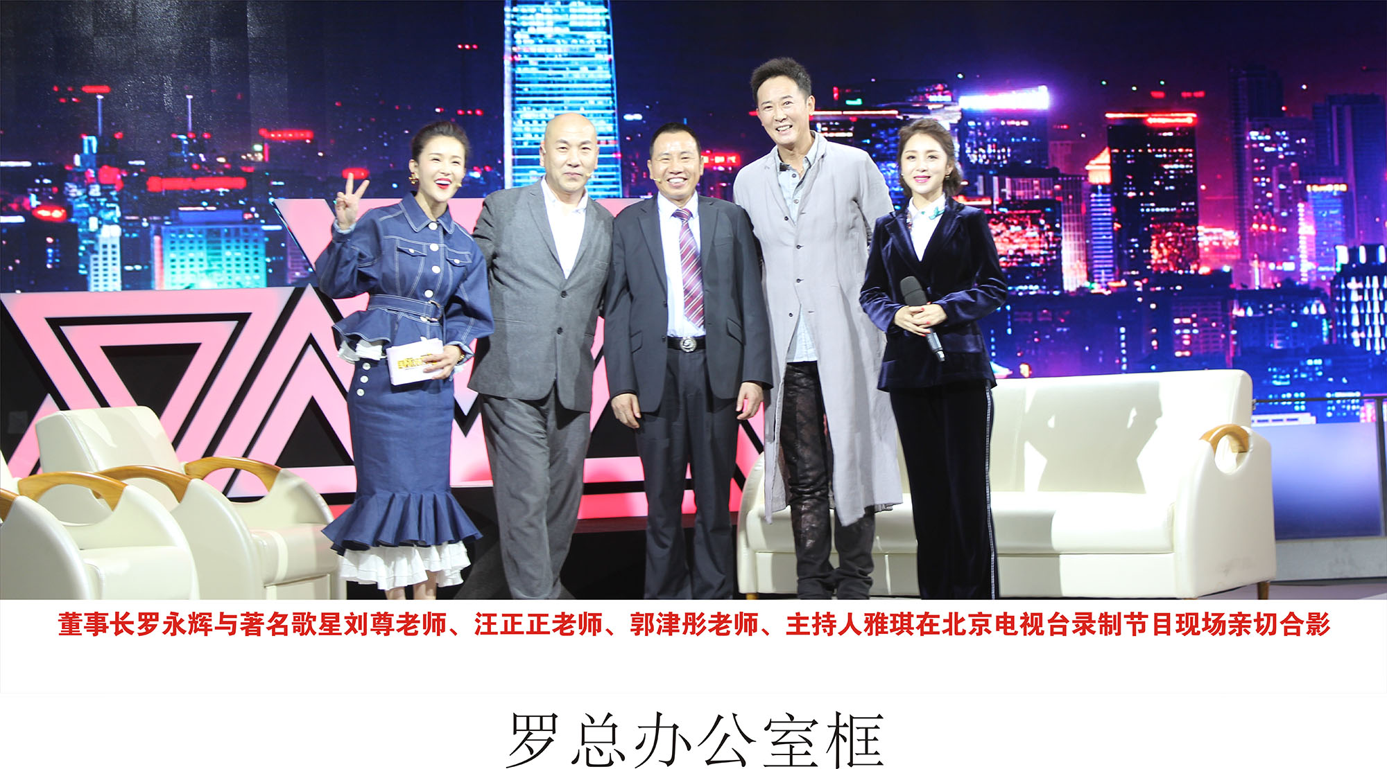 新望董事長羅永輝與著名歌星劉尊老師、汪正正老師、郭津彤老師、主持人雅琪在北京電視臺錄制節(jié)目現(xiàn)場親切合影
